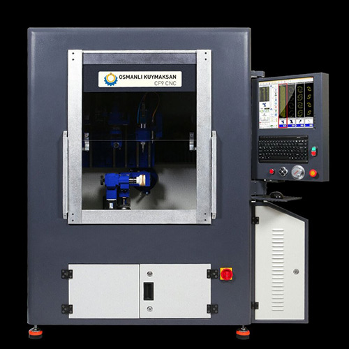 Bilgisayar motion kontrol kartı kontrollü 4 eksende enterpolasyon yapabilen Windows tabanlı çalışan hem alyans hem bilezik üzerine işleme yapabilen cnc makinedir.
