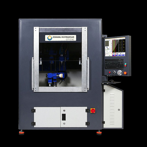 Bilgisayar motion kontrol kartı kontrollü 4 eksende enterpolasyon yapabilen Windows tabanlı çalışan hem alyans hem bilezik üzerine işleme yapabilen cnc makinedir.