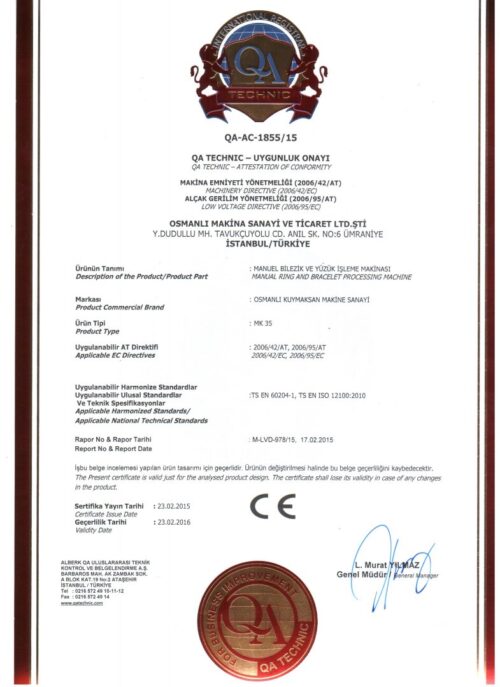 Osmanlı makine Kuyumculuk makineleri üretimi konusunda, sektörünün öncü ve yenilikçi firmalarındandır.
